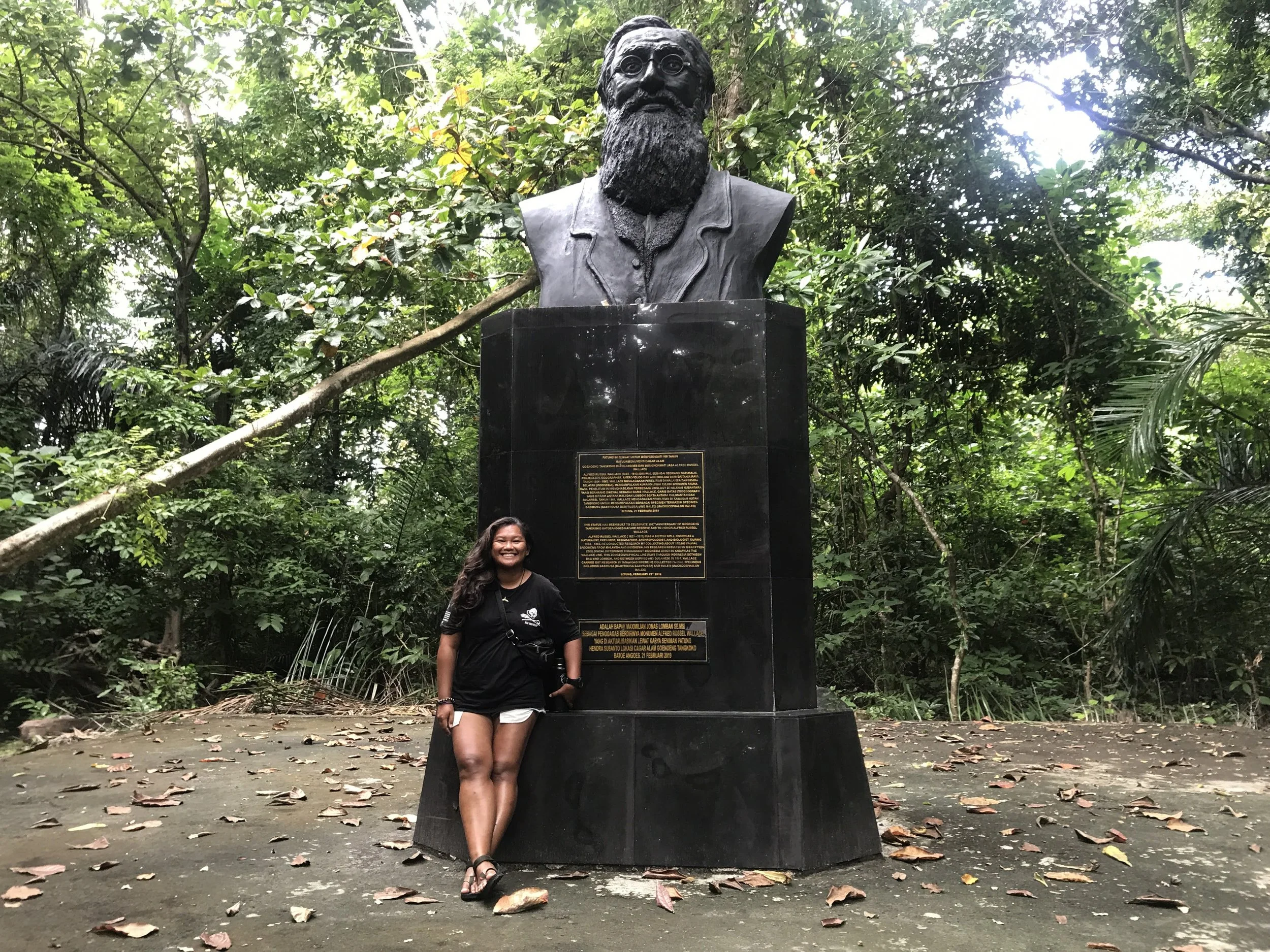 This Wallace fangirl standing happily and proudly in front of Wallace’s statue in Tangkoko Nature Reserve in North Sulawesi, Indonesia